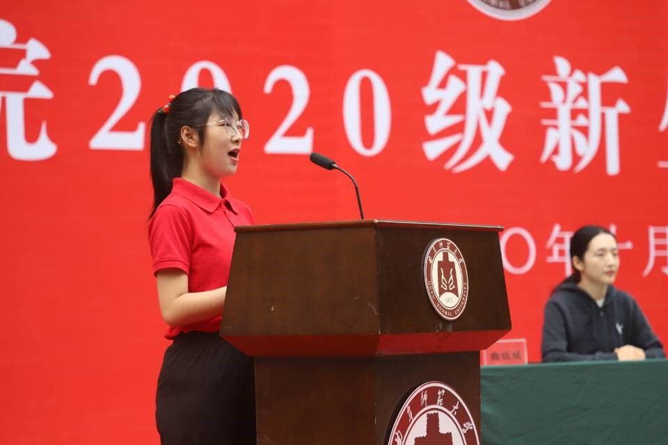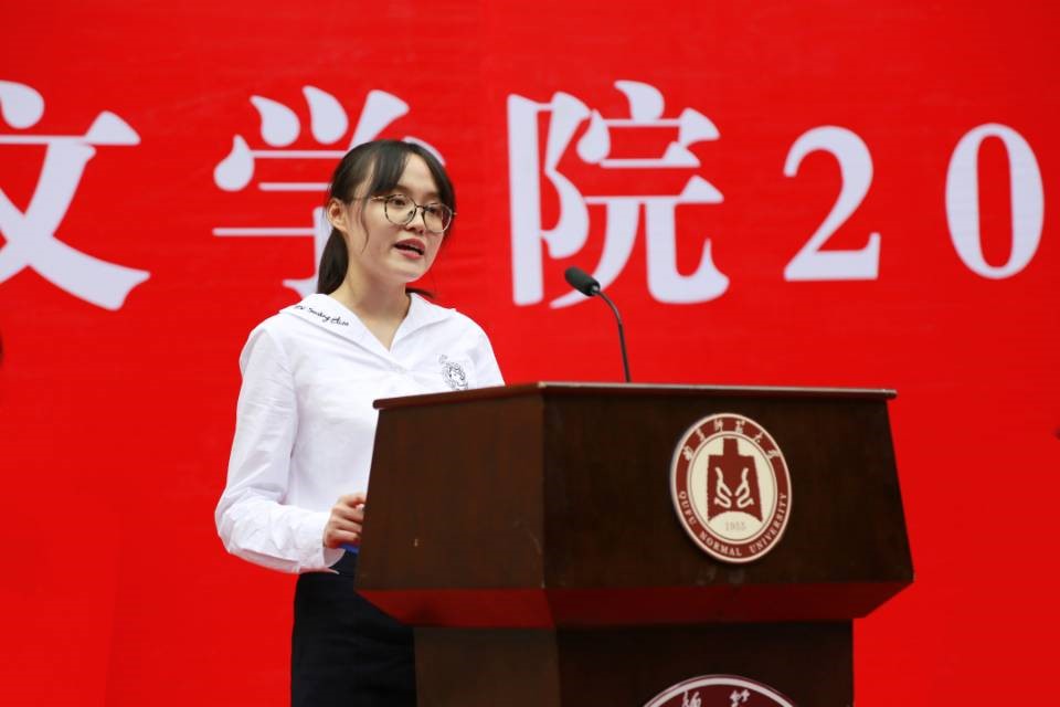 寒窗苦读少年志,韶华不负正当时。色花堂 2018级优秀学生代表暨国家奖学金获得者李春妍同学上台发言。作为一名大三的学生,李春妍向新生分享了自身的经验和感悟,并希望师弟师妹们在接下来的大学生涯中,能够坚持独立思考的求学态度,广泛阅读,温故知新,见贤思齐,积极锤炼个人品格,做勤学善思、明德笃志、知行合一的文院人。
