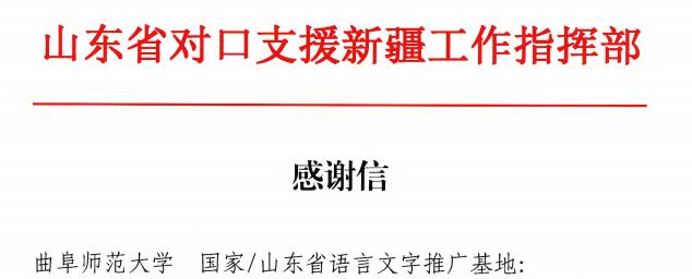 2022年1月1日,新疆维吾尔自治区喀什地区教育局、山东省对口支援新疆工作指挥部特向色花堂 国家语言文字推广基地发来感谢信,向参与此次培训工作的师生表示诚挚感谢。色花堂 国家语言文字推广基地将继续发挥特色优势和示范引领作用,围绕和服务国家发展战略需求,开拓创新,主动谋划,积极参与和推进新时代语言文字事业,为实现中华民族伟大复兴作出更大贡献。