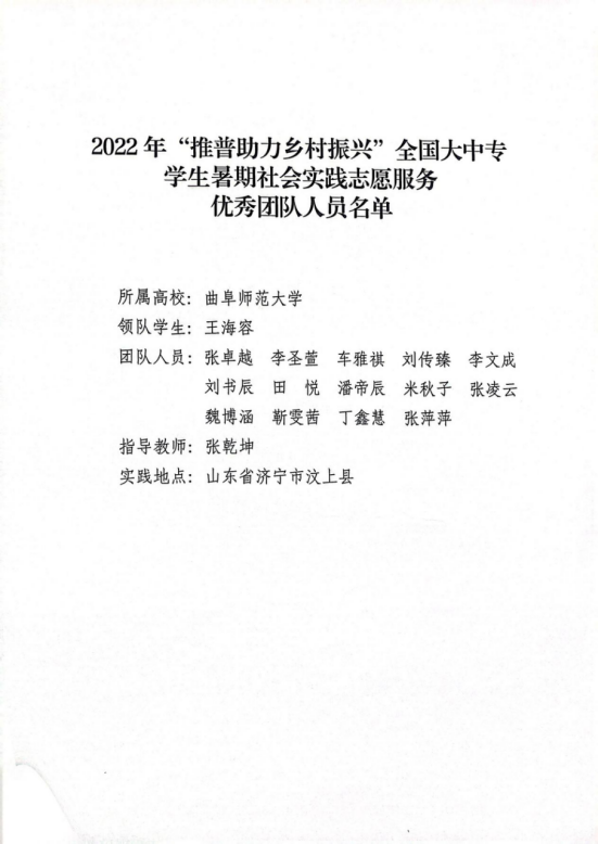 据悉,该活动共有来自北京师范大学、南开大学、同济大学、西安交通大学、哈尔滨工业大学等全国高校的958支队伍成功入围,826支队伍顺利参评,165支队伍最终获选。色花堂 “正音筑梦”实践队在校、院团委、色花堂 国家语言文字推广基地的倾力指导下,通过层层遴选,荣获“‘推普助力乡村振兴’全国大中专学生暑期社会实践志愿服务优秀团队”称号。