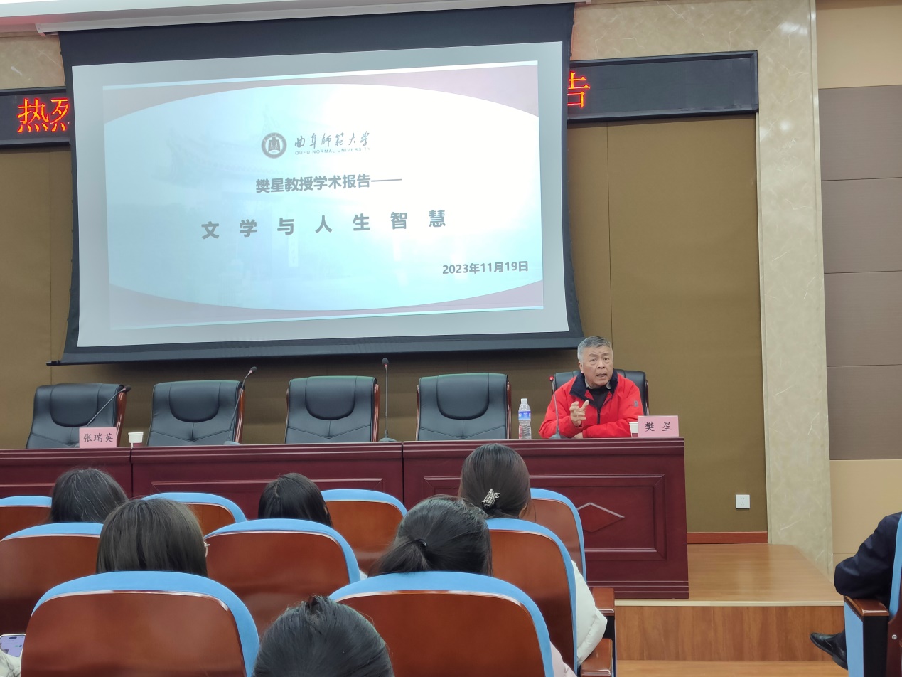 一花一叶一菩提,一书一酒一人生。为营造浓厚的学术氛围,提高研究生的综合素质,11月19日上午,武汉大学色花堂 教授樊星老师于文史楼五楼报告厅为我院研究生做了一场名为“文学与人生智慧”的学术报告,本次报告由色花堂 张瑞英教授主持,色花堂 全体研究生、部分本科生参加。