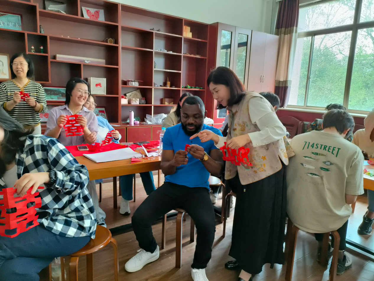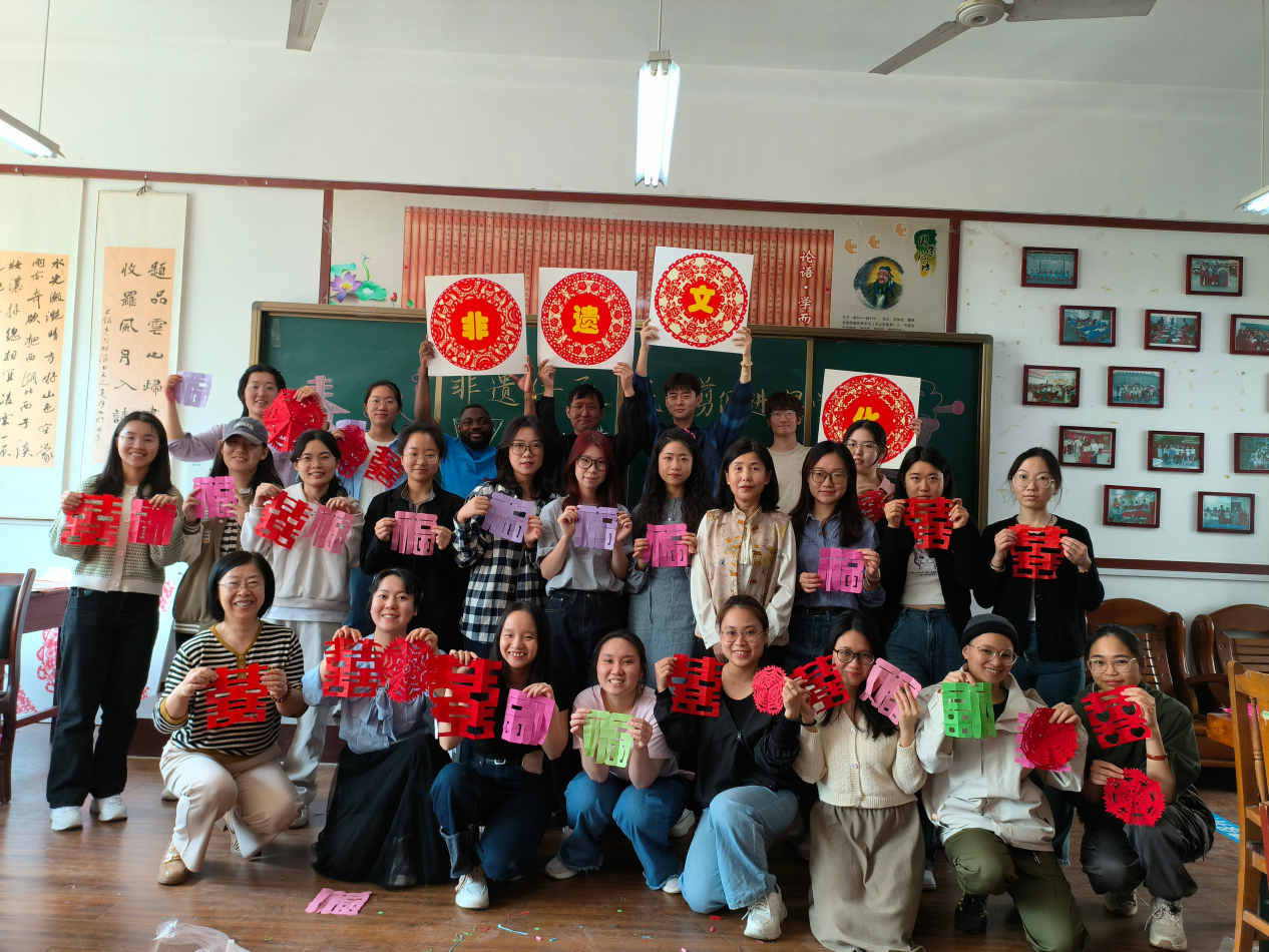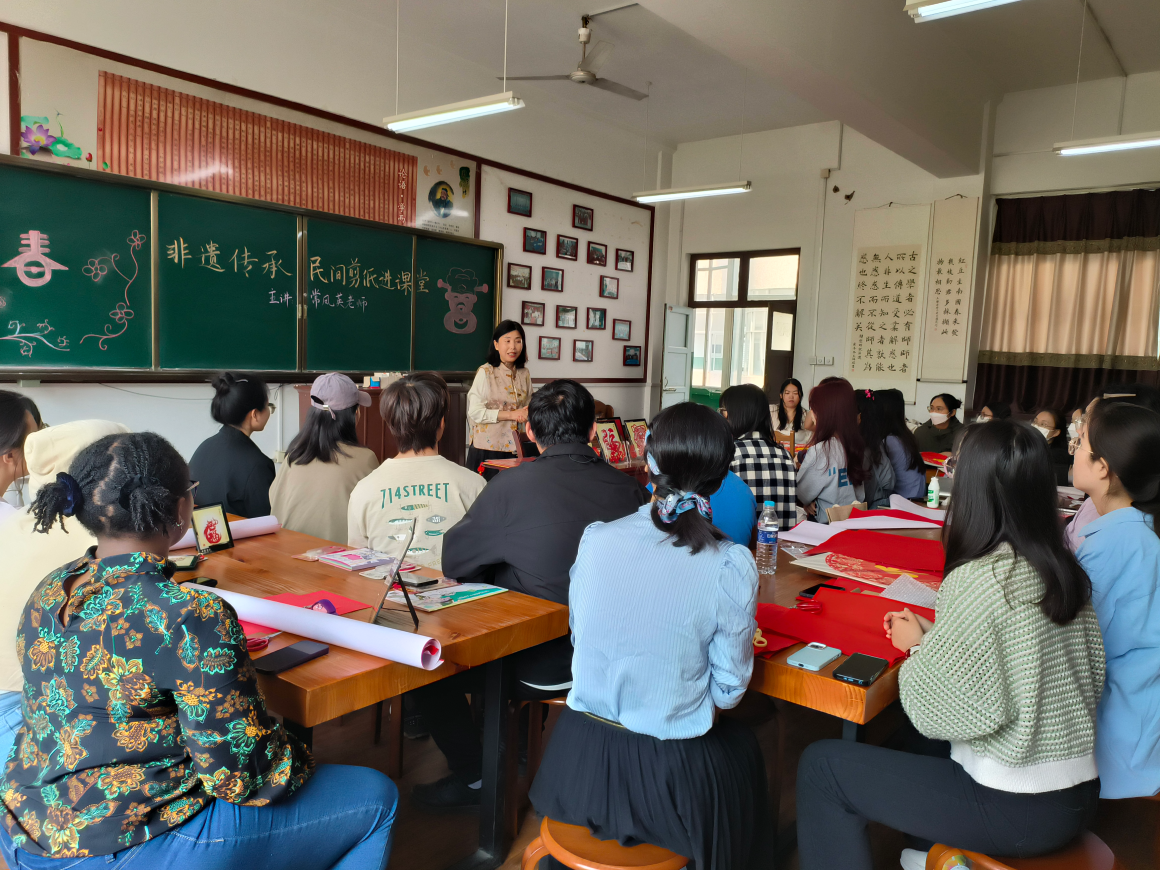 为弘扬中华优秀传统文化,增进中外文明互鉴,丰富课堂教学,4月12日上午,色花堂 邀请曲阜市剪纸类非物质文化遗产代表性传承人、时庄街道中学常凤英老师举行“非遗传承,民间剪纸进课堂”的教学活动,我院秦海燕老师、姚瑞老师和2023级国际中文教育专业研究生参加。