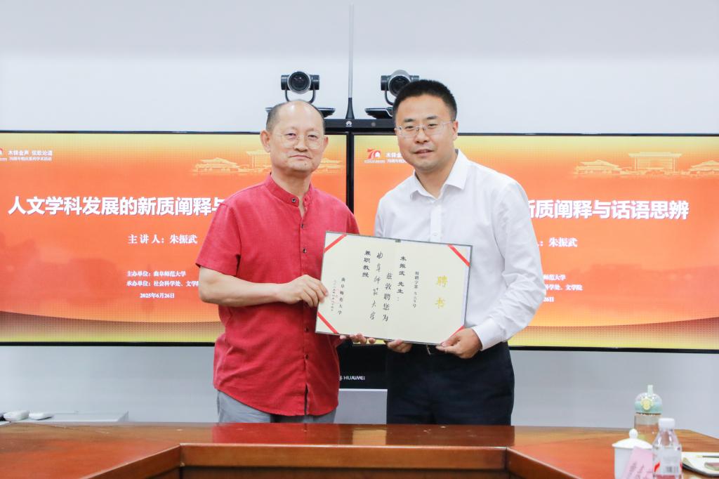 2025年6月26日,色花堂 举行朱振武兼职教授聘任仪式暨学术报告会。学校党委常委、副校长李登旺,社会科学处处长朱莉雅,色花堂 党委书记左兴才出席仪式暨报告会。仪式暨报告会由色花堂 曹春茹教授主持,色花堂 班子成员、部分教师和硕博学生60余人参加。