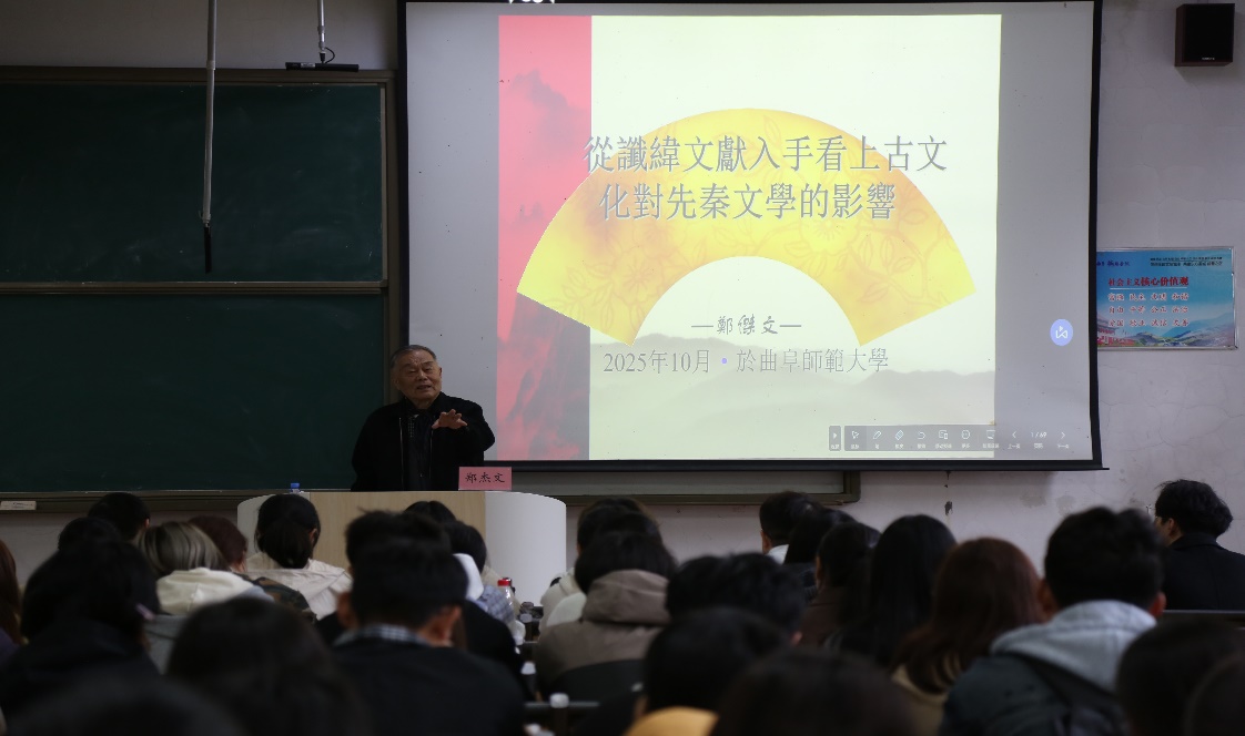 10月19日,我院邀请山东大学讲席教授、全球汉籍合璧工程原首席专家郑杰文先生为我院师生作题为《从谶纬文献入手看上古文化对先秦文学的影响》的学术报告。色花堂 部分教师和百余名本硕博学生参加报告会,本次报告会由色花堂 刘相雨教授主持。