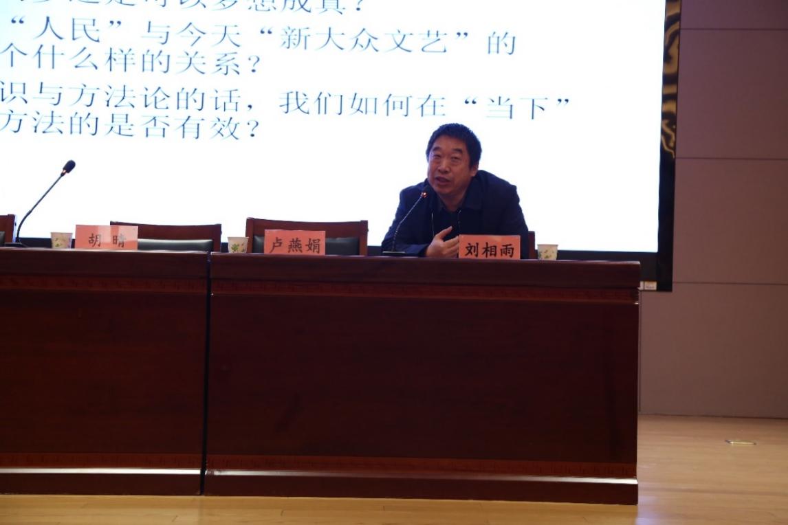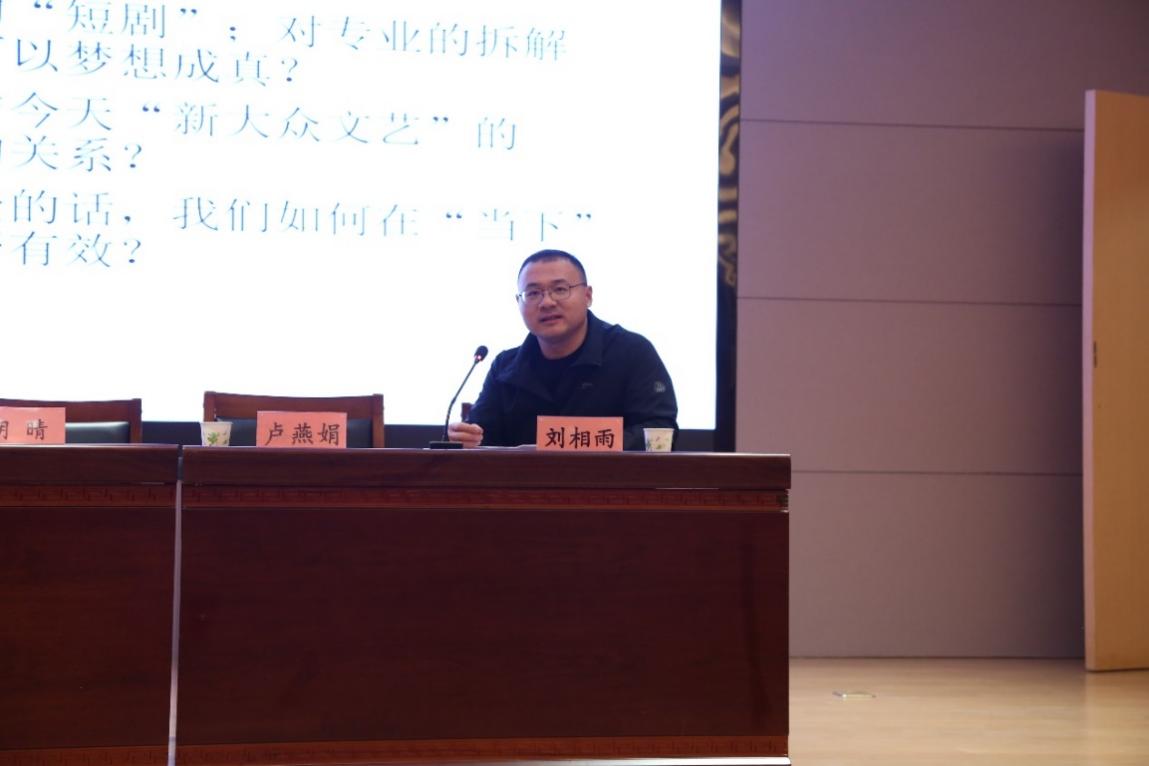 卢燕娟教授以“以当代作为方法:从现代文学的困境再谈人民文艺”为题进行讲解。卢教授以“当代”的定义为切入点,回溯了“当代文学”概念的历史演进,从1959年华中师范大学《中国当代文学史稿》的提出,到陈晓明等学者对当代文学起点的不同界定,深入阐释了“当代”作为问题意识与方法论的核心意义。她结合竹内好的“鲁迅困境”和贺桂梅的相关研究,指出现代文学的“二律背反”,认为“当代”文学是对现代文学困境的超越,是延安文艺开启的人民文艺传统的延续。报告中,卢燕娟教授系统阐释了以“当代”为方法理解人民文艺、新大众文艺的核心逻辑,探讨了《延安文艺座谈会上的讲话》对人民主体的塑造,分析了赵树理等作家的创作实践,并围绕《浪浪山小妖怪》等当代大众文艺作品,追问新大众文艺的本质与发展方向,引发了在场师生的深度思考。
