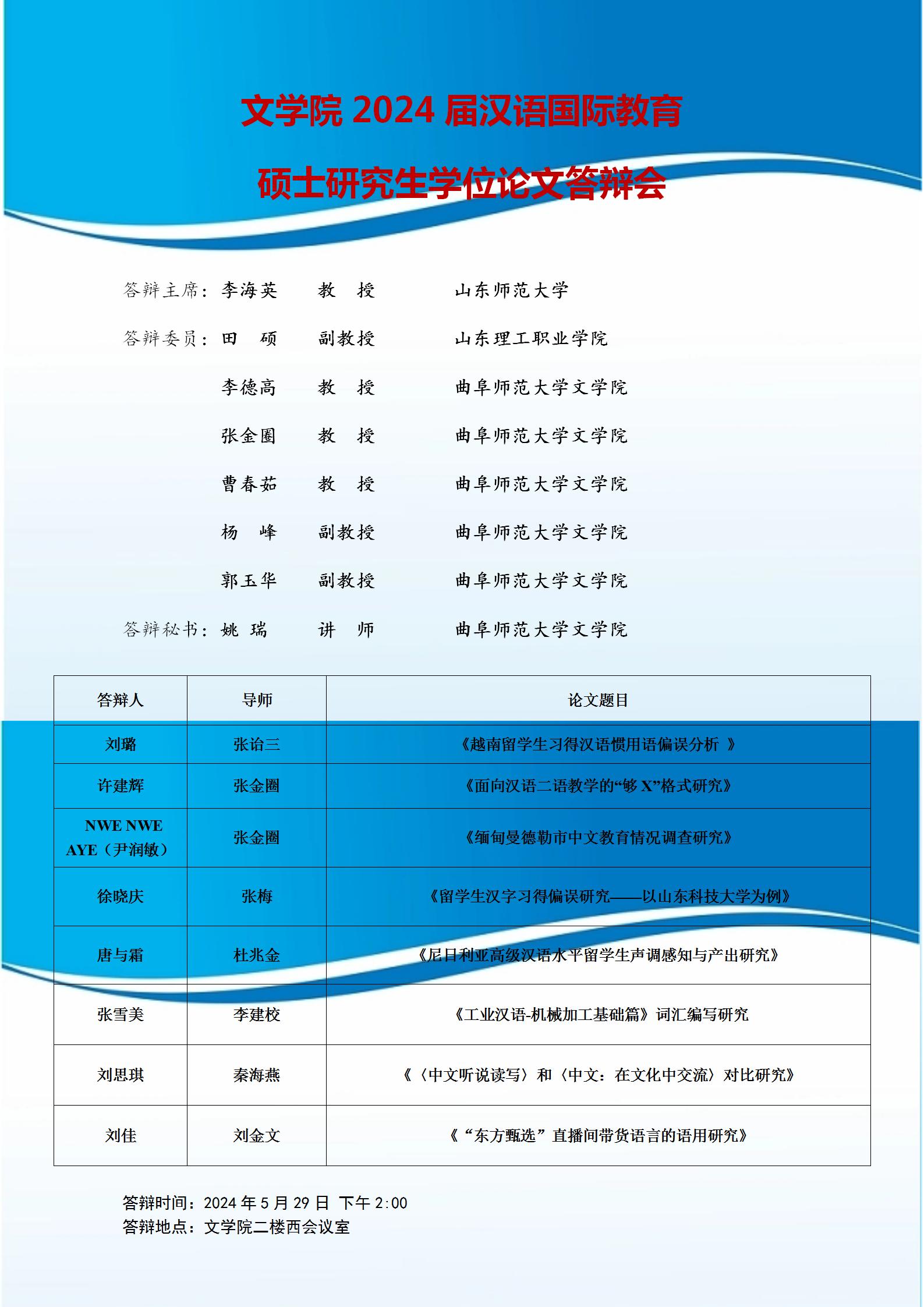 我院成功举办2024届汉语国际教育硕士研究生毕业实践汇...