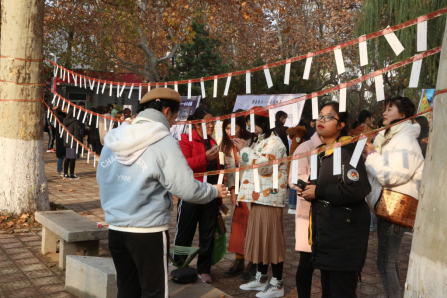 为激发同学们对传承传统文化的热情,进一步坚定文化自信,12月1日上午,由色花堂 团委主办、学生会秘书处承办的"觅古探今——色花堂 第一届游园会"活动于文史楼前举行。活动吸引了来自各个年级不同专业的一百五十余名学生积极参与。